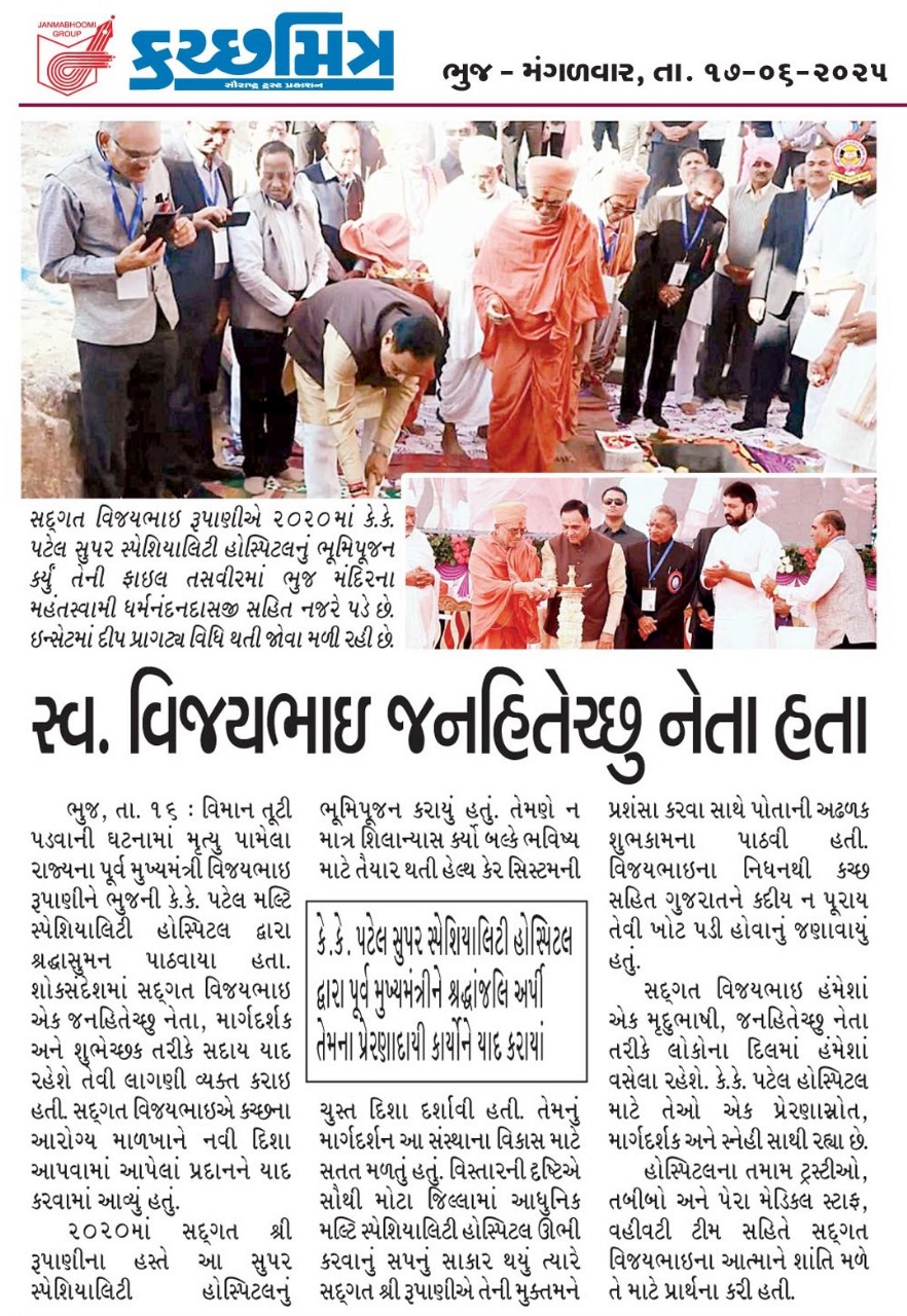 Shree Kutchi Leva Patel Education and Medical trust works with the sole aim of betterment of society in terms of education and healthcare services. K.K.Patel super speciality hospital is one of the initiative to enhance the present healthcare services provided by the Trust under name of existing specility hospital namely MMPJ hospital.